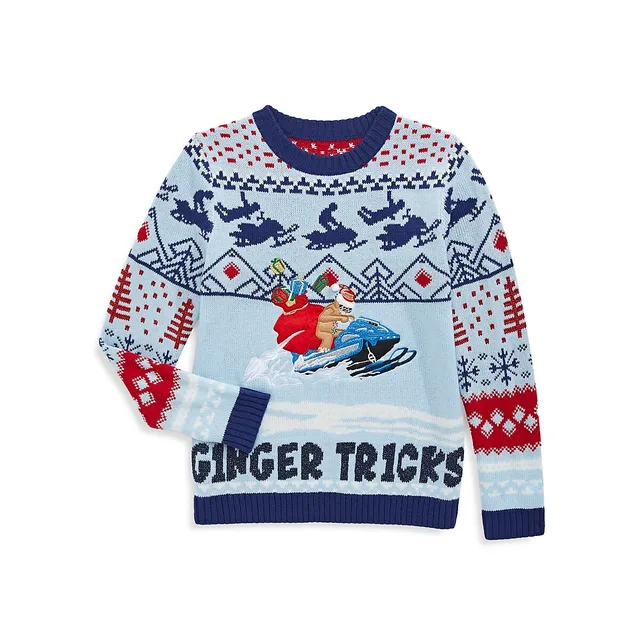 Boy’s Ginger Tricks Snowmobile Intarsia Sweater