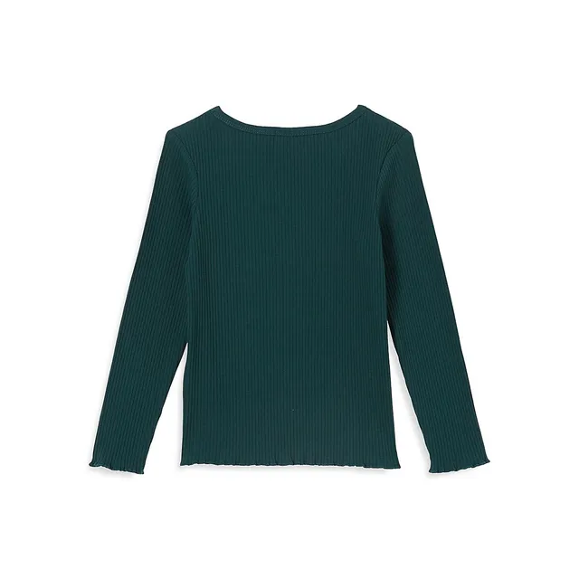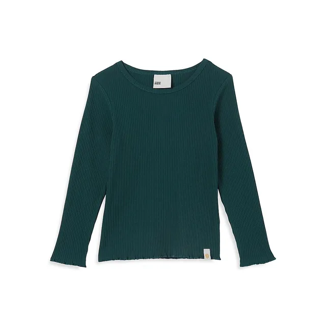 COTTON ON Girl’s Jade Ribbed Lettuce-Trim Top