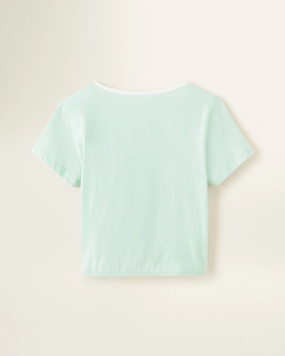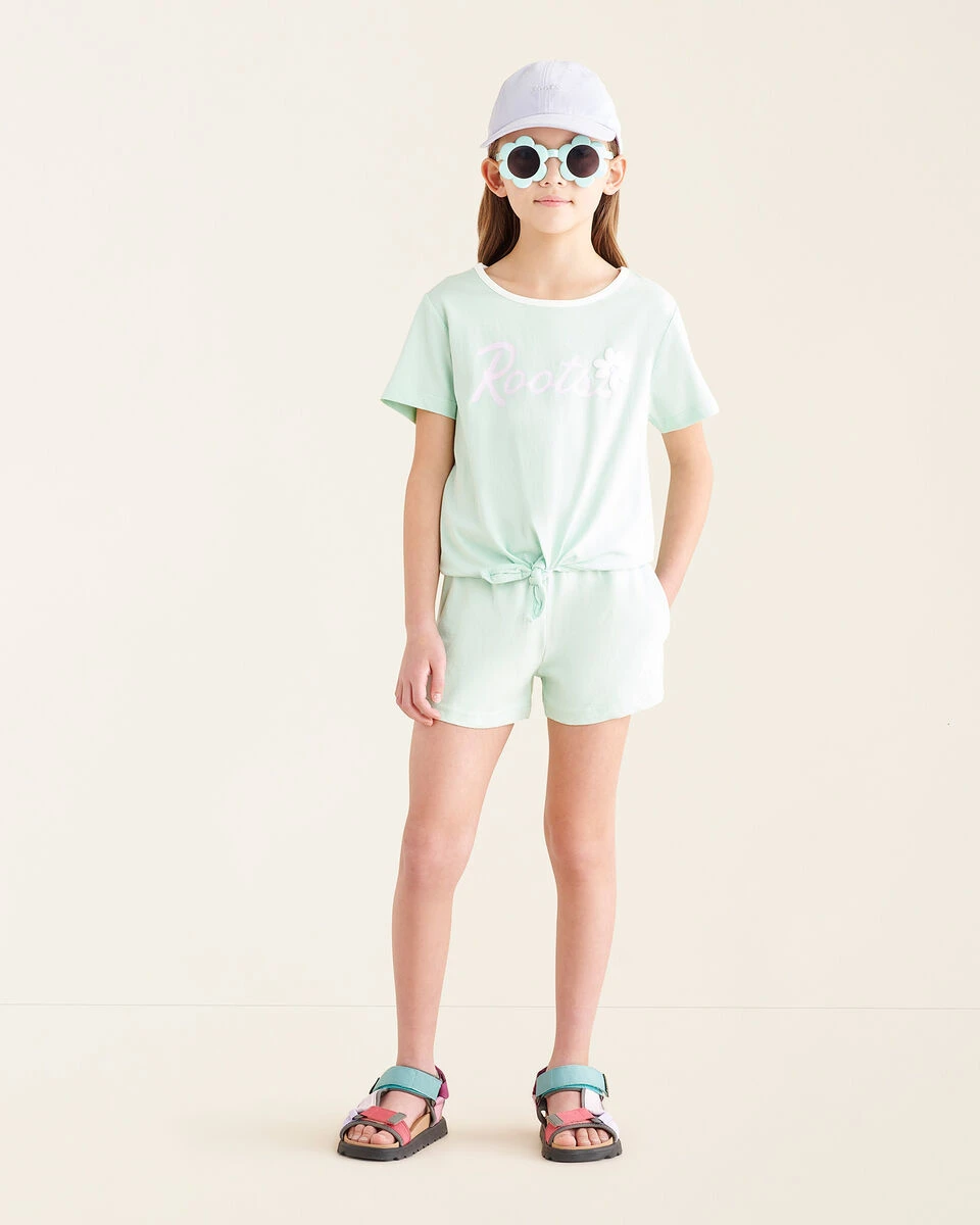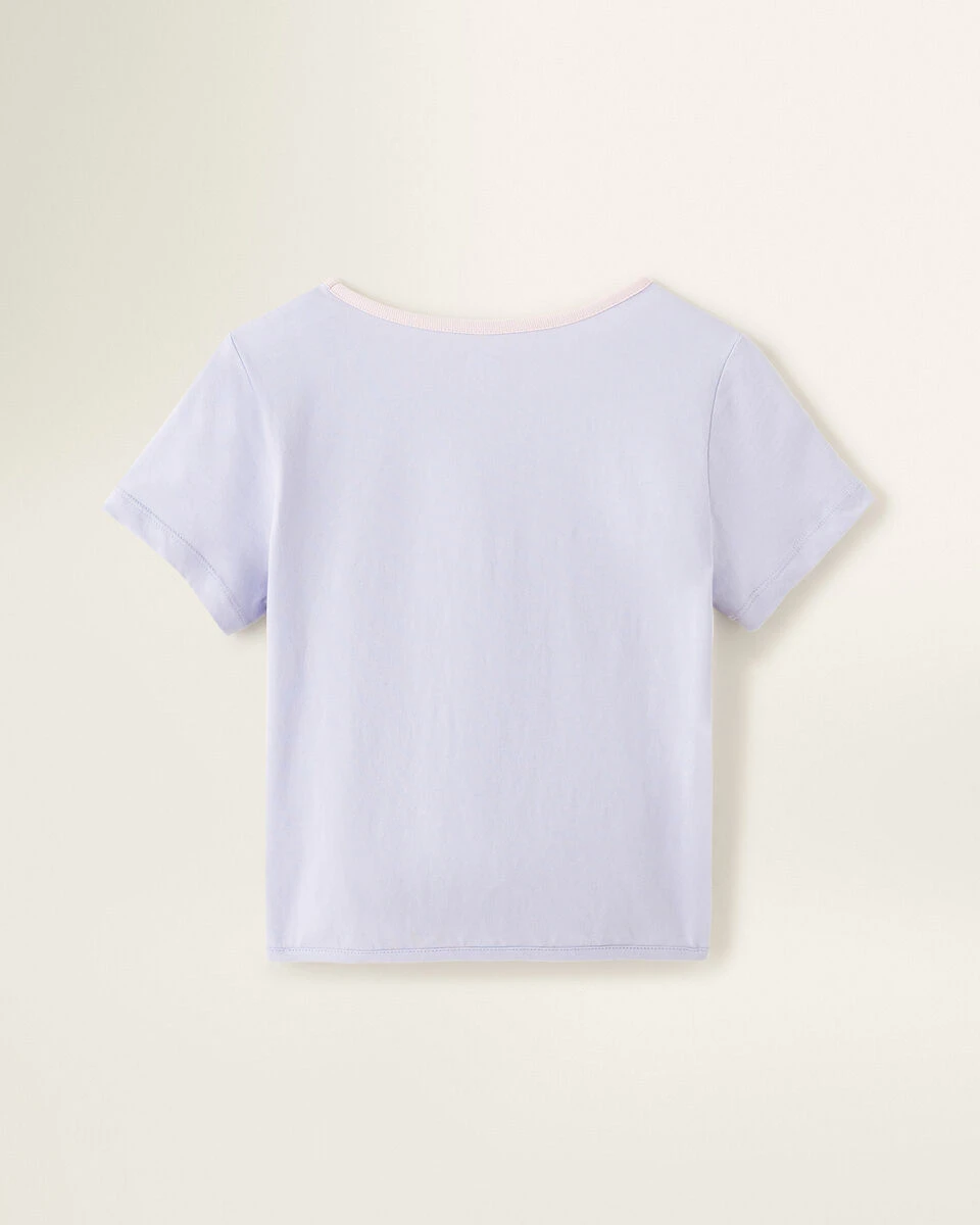 What do we love about summer? Going on nature walks and looking at wildflowers! This tee has floral artwork that simulates flowers gathered on a peaceful summer afternoon, with a handy knot detail (it’s perfect for playtime, too).
