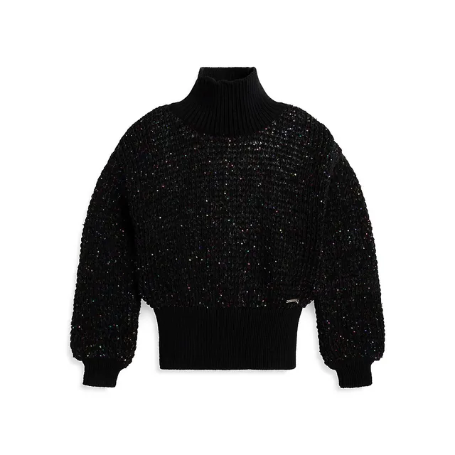 Guess Girl’s Balloon-Sleeve Sequin Sweater