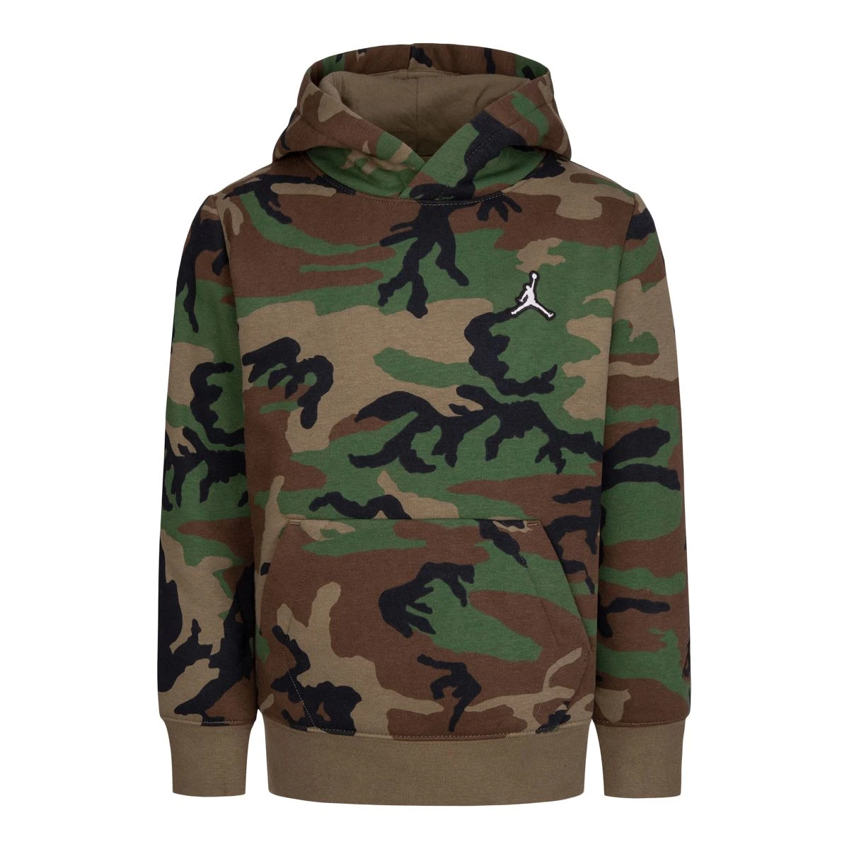 Lightweight fleece hoodie with standard fit. Featuring an All Over Camouflage print Embroidered Jumpman logo Speckle printed front pocket and ribbed cuffs and hem.
