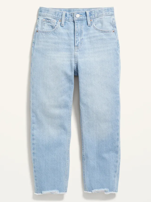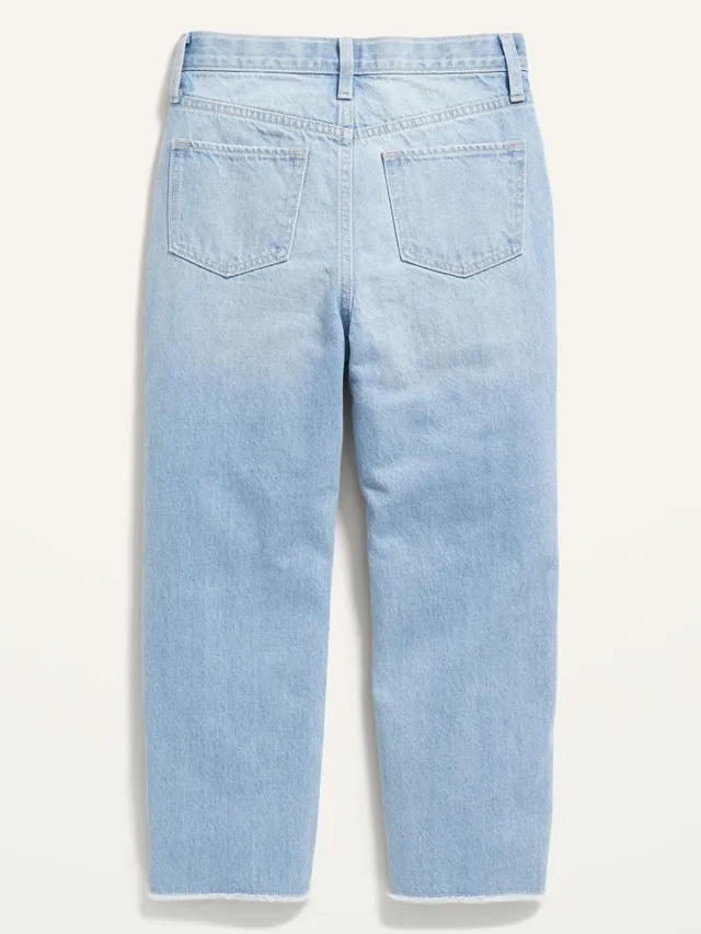 Old Navy High-Waisted Slouchy Straight Frayed-Hem Non-Stretch Jeans For Girls